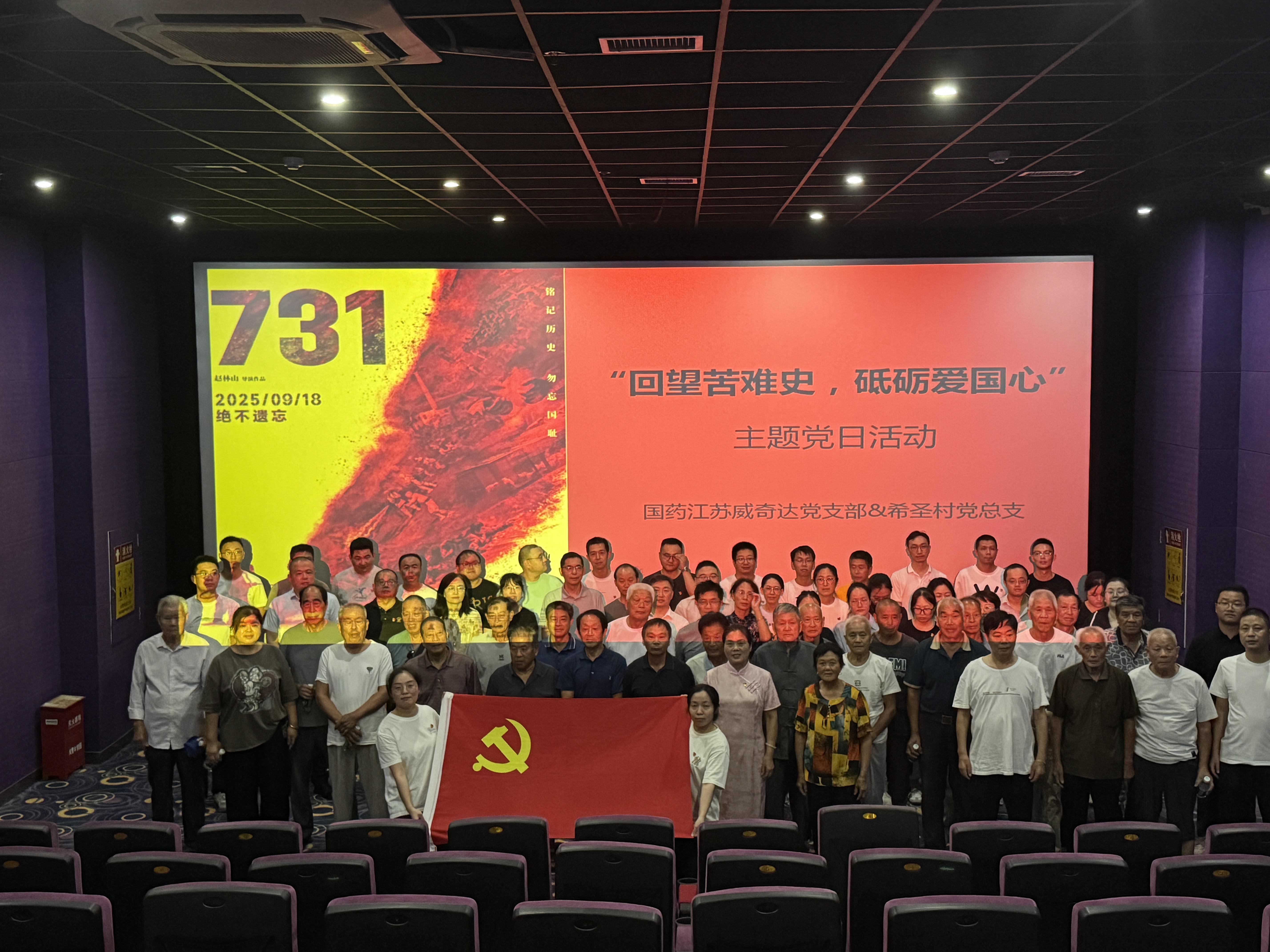 国药江苏威奇达党支部与临江镇希圣村党总支携手开展《731》主题观影活动,在光影中重温那段刻骨铭心的历史,于震撼与沉思中厚植爱国情怀、砥砺担当精神。